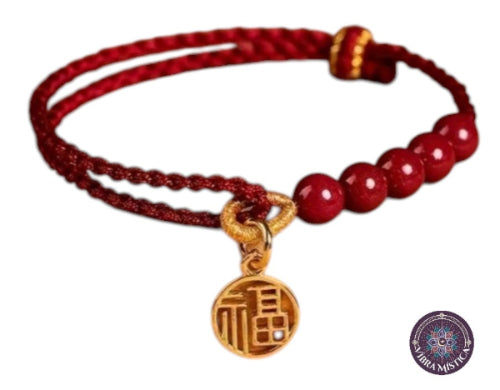Pulsera Roja de Cinabrio con símbolo 福 – Suerte, protección y energía